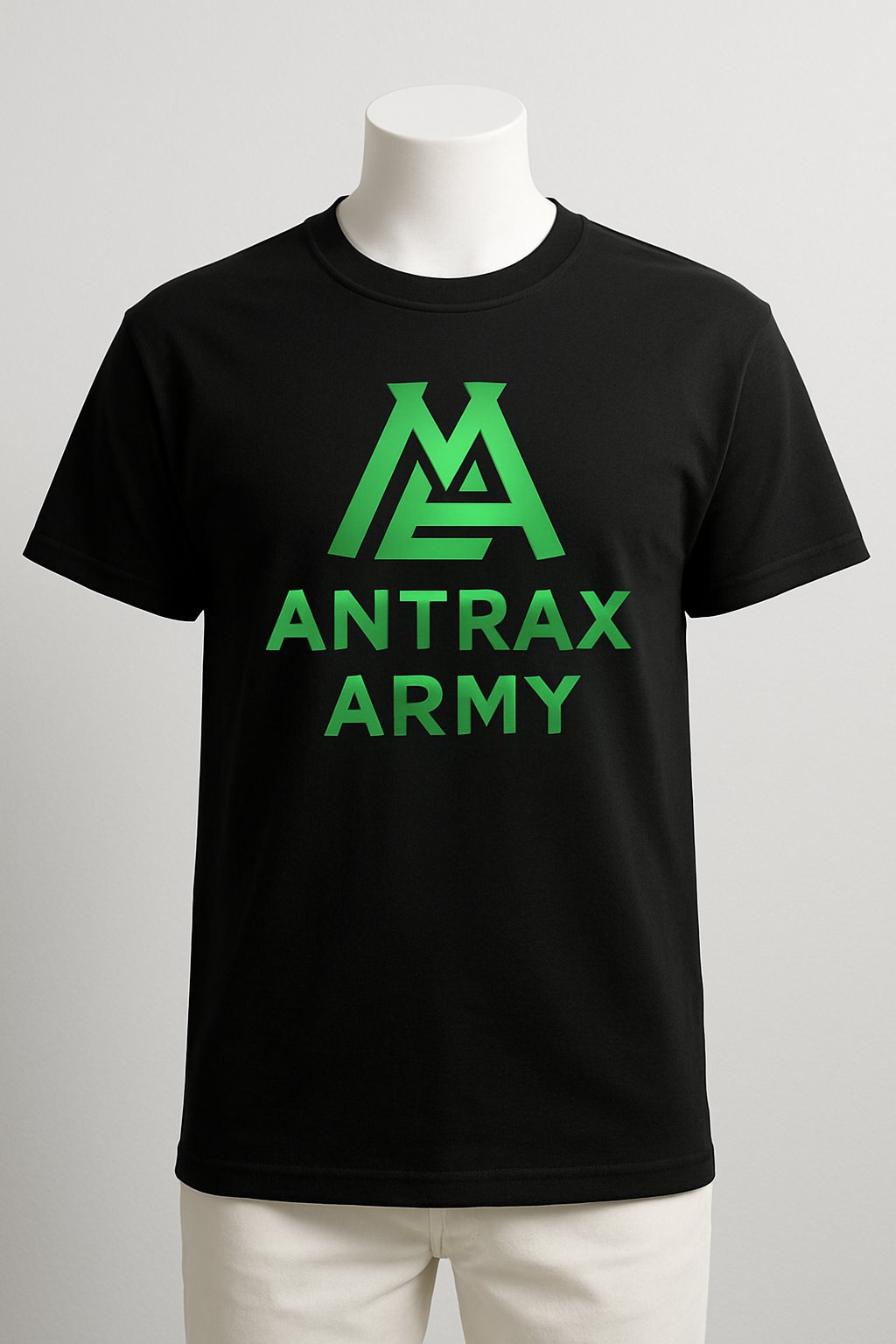 The official tee of the Antrax Army. Black shirt. Bold green logo. Worn by real one only. Premium feel, regular fit.